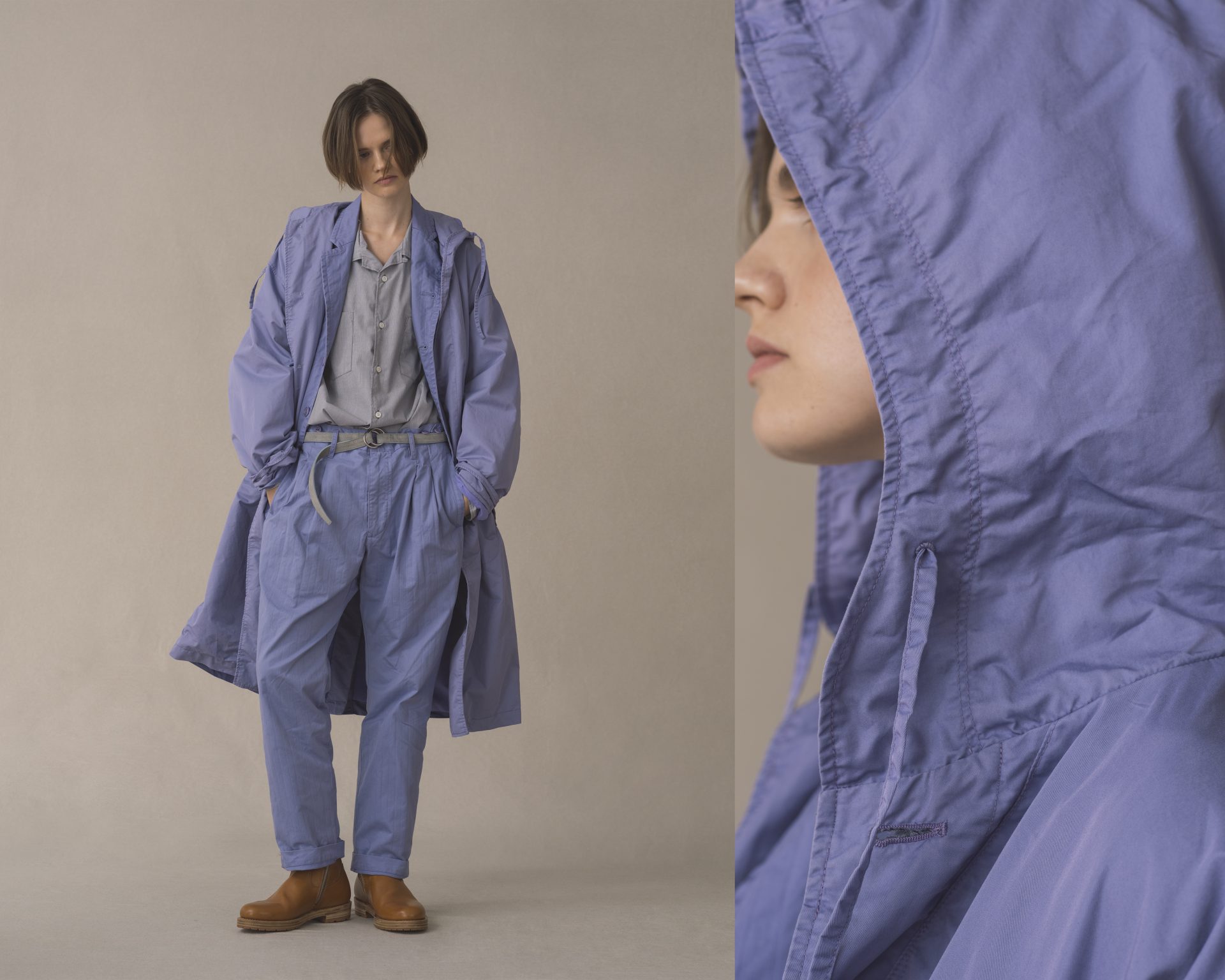 - DWELLER HOODED COAT C/N GABARDINE PIGMENT DYE WITH WINDSTOPPER®