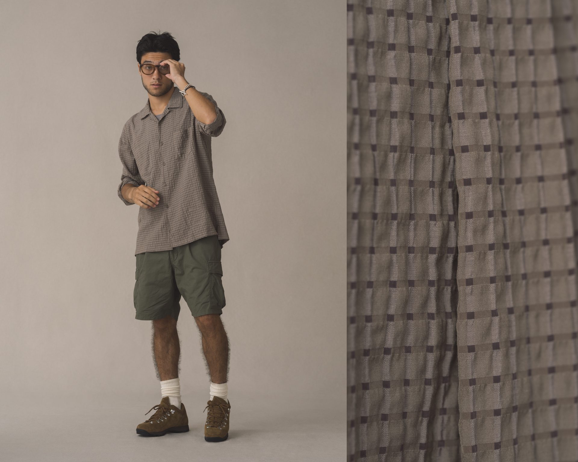 - OFFICER STAND COLLAR S/S SHIRT COTTON TWILL OMBRE CHECK by Rafu