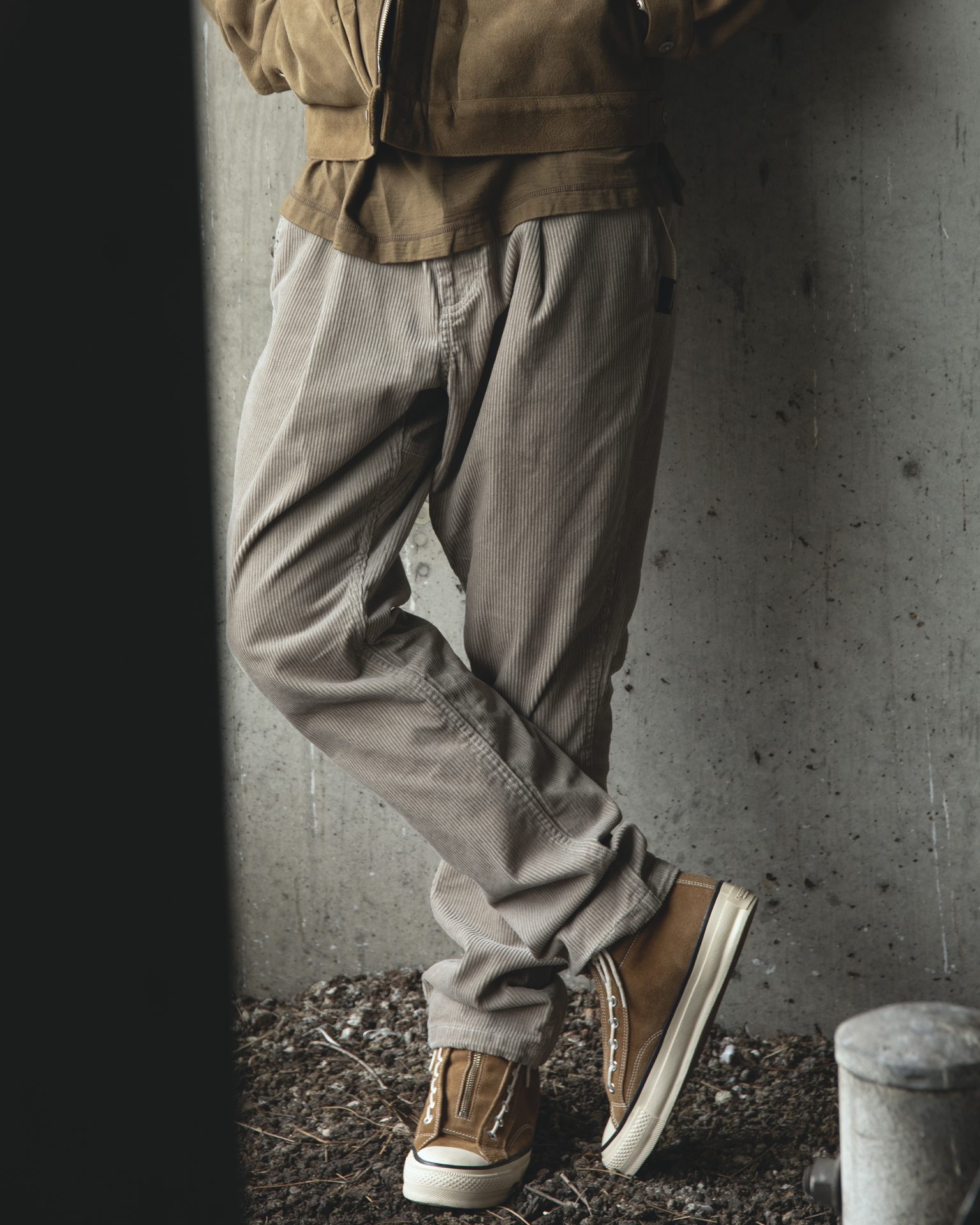 • The latest drop in the Gramicci collaboration series arrives in nonnative’s signature corduroy. While corduroy has long been a favorite in past collaborations, this season introduces a medium-wale texture with a more traditional feel. As the weather cools and layered tops add volume, these moderately thick corduroy bottoms make the perfect match. Sulfur dyeing gives each piece a soft, timeworn depth of color, as if aged and lived in for years. Two silhouettes debut this season: the relaxed straight-leg WALKER ST EASY PANTS and the naturally tapered WALKER TP EASY PANTS. Corduroy, the timeless casual staple, reimagined through nonnative’s distinctive lens for autumn.