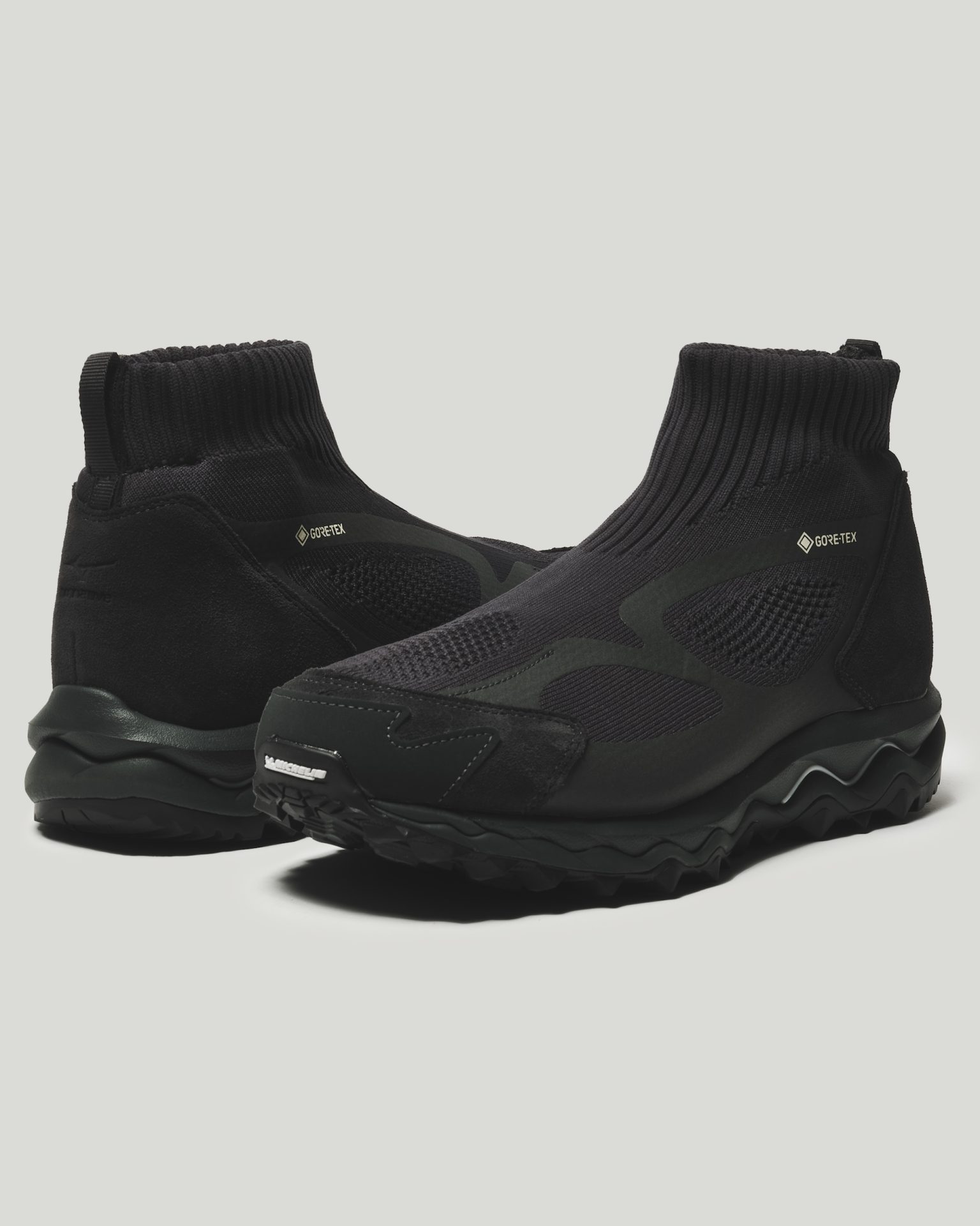 - The WAVE MUJIN TL GTX nonnative, a collaboration model born from MIZUNO’s advanced technology and distinctive design approach, has become a favorite for its high functionality and comfortable fit. This fall, the highly acclaimed BLACK colorway―first released in winter 2023 as part of the second series―makes its return. While maintaining a monochromatic look, subtle tonal variations across the suede, knit, overlays, and sole unit create a refined gradation that adds depth to the design. The upper combines the waterproof and breathable performance of GORE-TEX products with the natural stretch of knit material, making it easy to put on and take off. Despite its unique appearance, the construction remains sleek and highly functional. A durable MICHELIN outsole provides superior grip, ensuring reliable traction across a range of environments―ideal even for winter activities. Don’t miss the return of this sought-after colorway, one of the most popular in the series.